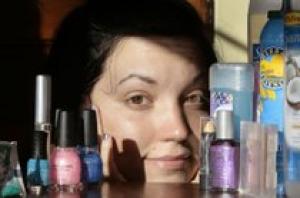 Jesse Chapman, of Kansas City, posing with her many of her personal care products, has agreed to take the challenge to try to use healthier, more eco-friendly products. McClatchy-Tribune